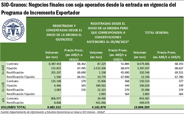 El 05 de septiembre entró en vigor el Programa de Incentivo Exportador que fija un tipo de cambio transitorio de AR$ 200/US$ para las operaciones de venta al exterior del complejo soja hasta el 30 de septiembre, redundando en una mejora del precio pagado por la exportación y la industria exportadora en la plaza local.