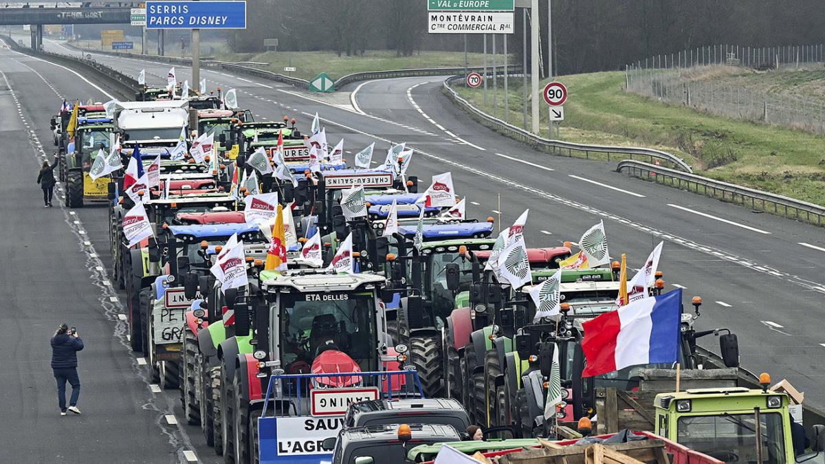 Un convoy de entre 200 y 300 tractores convocado por el sindicato Coordinación Rural salió el lunes desde el suroeste del país con el objetivo de bloquear Rungis, pero estaba paralizado a casi 200 kilómetros del mercado, según la Prefectura.