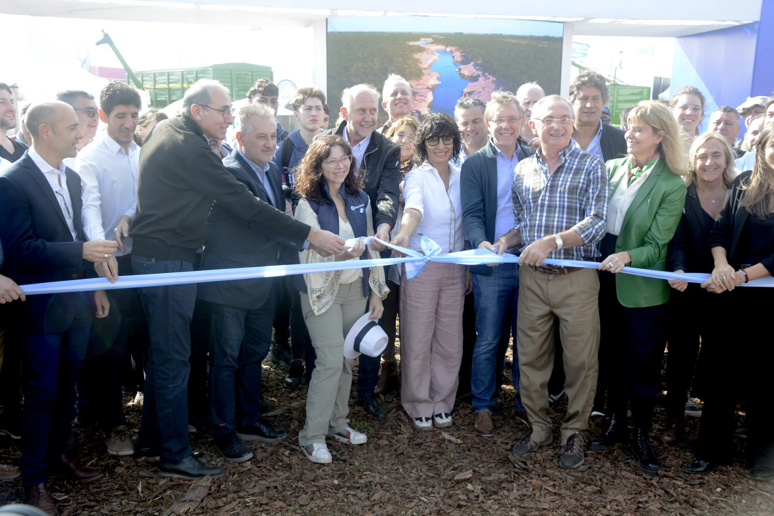 La presidente de AgroActiva, Rosana Nardi, y el gobernador de la provincia de Santa Fe, Omar Perotti, encabezaron el acto en el acceso al predio ubicado en la intersección de la Ruta Nacional 178 y la autopista Rosario Santa Fe.