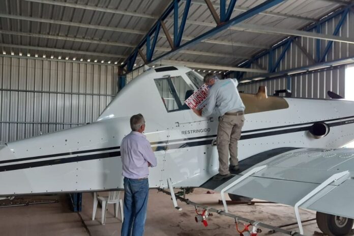 Esta mañana, inspectores de la Dirección General de Fiscalización y Control del Ministerio de Agricultura y Ganadería, de manera coordinada con la Patrulla Rural delegación Sur, clausuraron en la localidad de Serrano una aeronave que se dedicaba a la pulverización de productos químicos y biológicos de uso agropecuario.