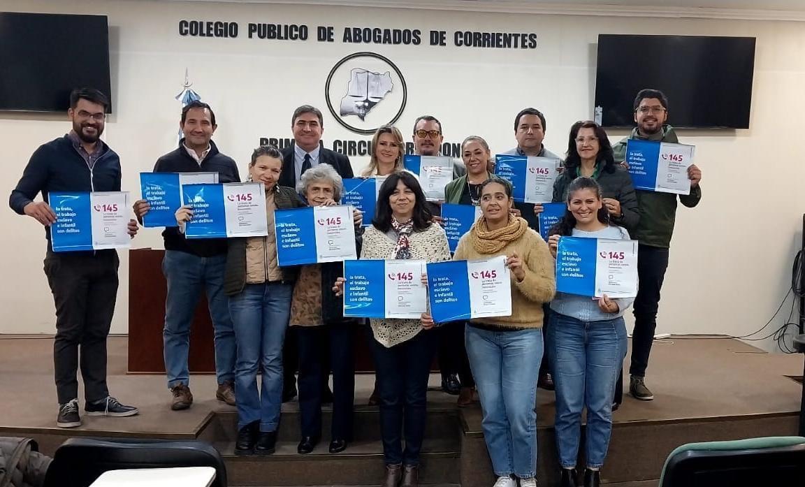 El pasado 22 de junio la delegación RENATRE Corrientes participó de la Mesa Interinstitucional contra la Trata y Explotación de Personas con la participación de diversos organismos nacionales y representantes de UATRE, donde se incorporó a dos importantes miembros a la mesa, al Colegio de Abogados de de la provincia y la Comisión de Justicia y Paz del Arzobispado correntino.