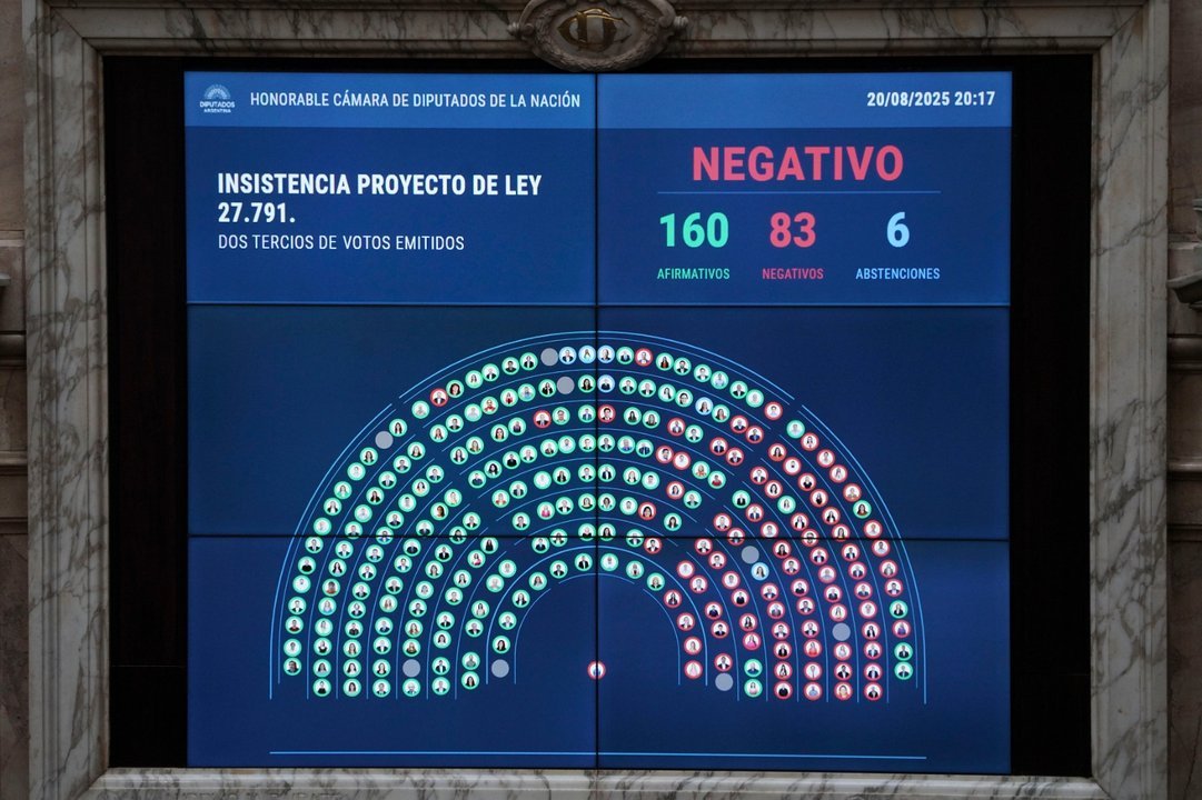 El voto negativo a la insistencia, que en la práctica significa un respaldo al veto presidencial, provino mayoritariamente de los bloques de La Libertad Avanza y el PRO, aunque también sumaron su apoyo un sector de la UCR y otros bloques provinciales. A continuación, el listado completo:
