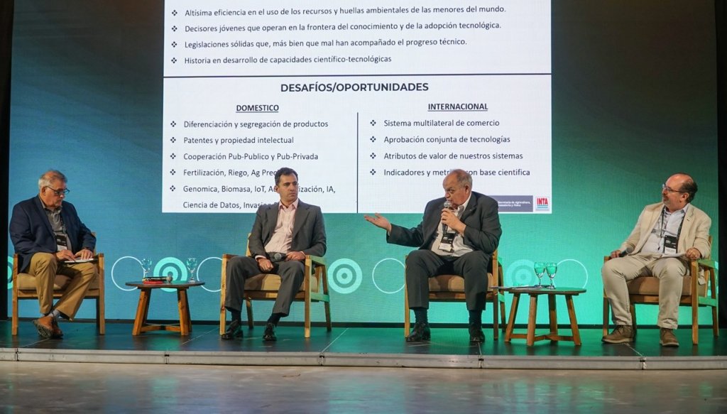 Nicolas Bronzovich, presidente del INTA, y Manuel Chiappe, subsecretario de Produccion Agropecuaria y Forestal, defendieron en el panel la estrategia de vincular con mayor profundidad las capacidades tecnicas del organismo con demandas productivas y mercados. Ambos coincidieron en que, frente a la presion por ajustes presupuestarios y la reciente conformacion del Consejo Directivo del INTA -que debera definir criterios para aplicar recortes que el Poder Ejecutivo busca instrumentar-, la prioridad del instituto debe pasar por generar espacios de cooperacion que permitan convertir conocimiento en valor economico.