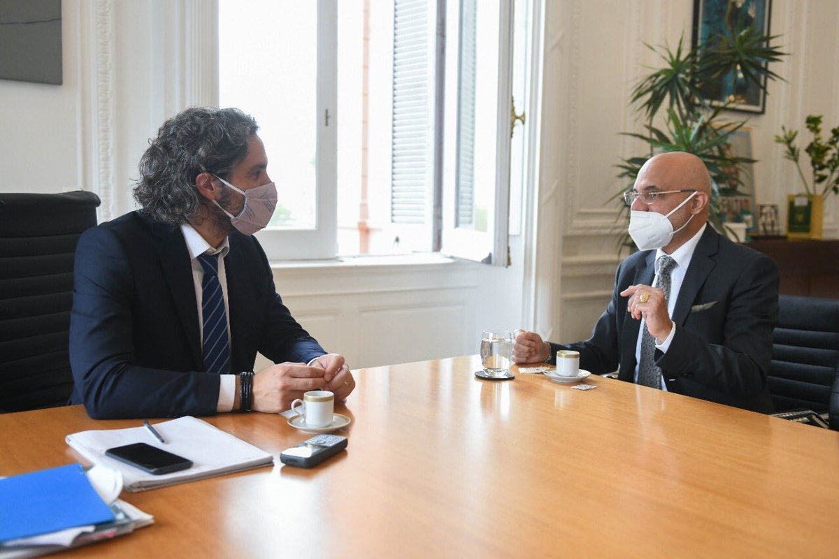 El canciller y el embajador compartieron la necesidad de garantizar el acceso equitativo a las vacunas contra el Covid-19 en todos los países del mundo, como así también el acceso a los conocimientos y experiencias científicas y tecnológicas para hacer frente a la pandemia.