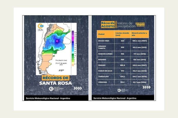 El mes de agosto concluyó con lluvias históricas en Entre Ríos. Según los registros del SMN, la provincia fue una de las más afectadas por el evento que atravesó gran parte del país y dejó marcas inéditas en algunas localidades.