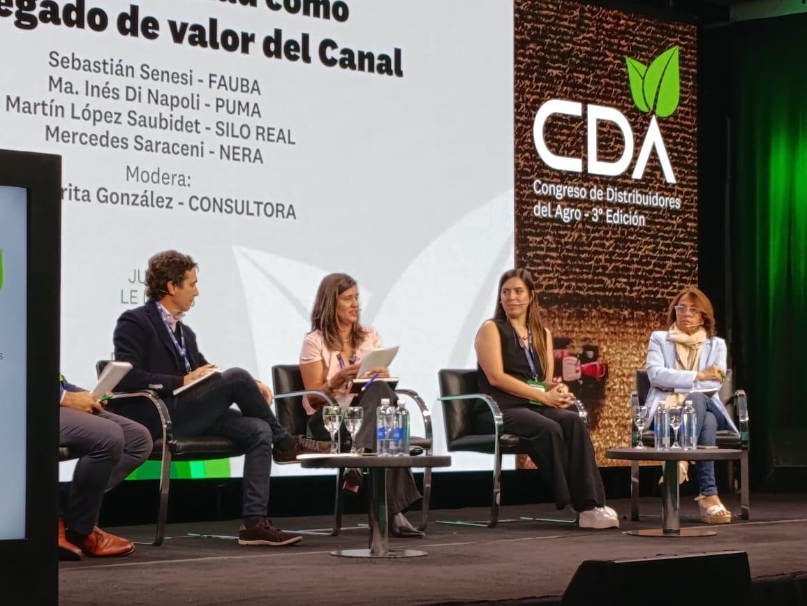 El primer panel de la jornada puso la lupa en la sostenibilidad como motor de valor agregado para los distribuidores. Moderados por la ingeniera agrónoma Margarita González, referentes como María Inés Di Napoli (Plataforma PUMA), Martín López Saubidet (SiloReal), Mercedes Saraceni (Nera) y Sebastián Senesi (FAUBA) exploraron cómo el “greendeal”, la huella de carbono, la digitalización y las finanzas verdes están transformando el rol del distribuidor.