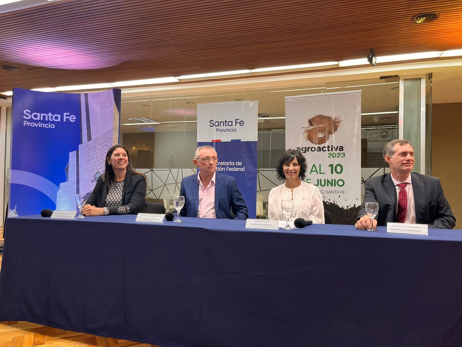 El evento se llevó a cabo en la Casa de Santa Fe y estuvieron presentes el ministro de Producción, Ciencia y Tecnología del Gobierno santafesino, Daniel Costamagna, la secretaria de Gestión Federal de la Provincia de Santa Fe, Candelaria González del Pino, el intendente de Armstrong, Pablo Verdecchia y la directora general de Agroactiva, Rosana Nardi. También acompañaron medios de noticias digitales, de radio y televisión, entidades, empresas y expositores.