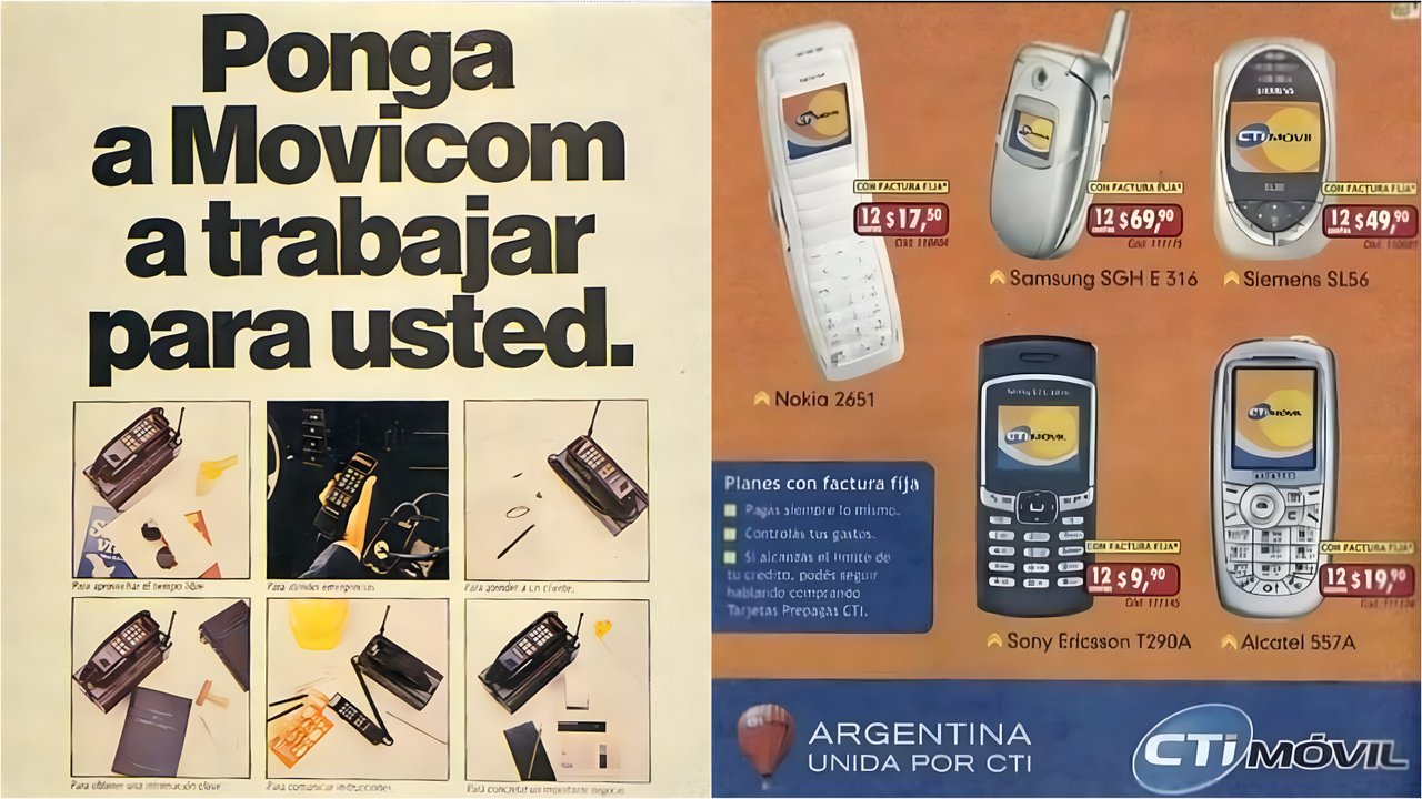 Esa publicidad de CTI Móvil (empresa que luego se convirtió en Claro) es de mediados de la década del 2000 (aproximadamente 2004-2005), posterior a la crisis de 2001 y la devaluación del peso. Los precios que figuran allí son de planes con factura fija en pesos, no el valor del equipo durante la convertibilidad.