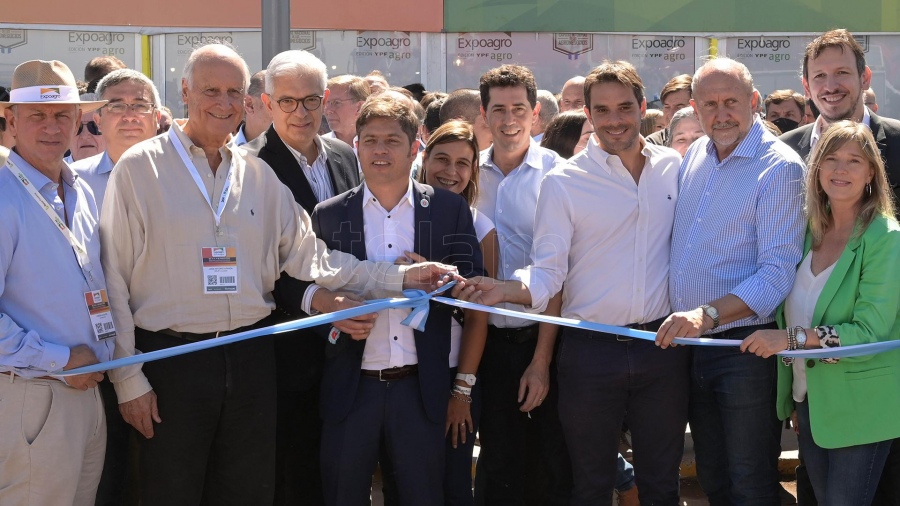 El ministro de Agricultura, Ganadería y Pesca, Julián Domínguez; el titular de la cartera de Interior, Eduardo “Wado” de Pedro; y el gobernador de Buenos Aires, Axel Kicillof; participaron este mediodía en San Nicolás de la jornada inaugural de ExpoAgro 2022-Edición YPF Agro, un encuentro que reunirá a lo largo de esta semana a los principales actores de la cadena agroindustrial, con una previsión de negocios que podría superar los 1.300 millones de dólares.