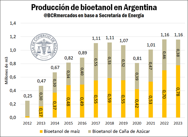 Para compensar dicho recorte productivo y en un contexto alcista para el consumo de naftas, el año pasado creció nuevamente la producción de bioetanol de maíz en Argentina. Con un incremento del 10,5% respecto del 2022, la Argentina volvió a romper su récord de producción de bioetanol de maíz.