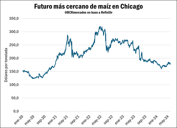 Se acentúa la racha negativa del maíz en la semana tanto en el mercado local como en la plaza externa de referencia, con precios que fueron de más a menos.