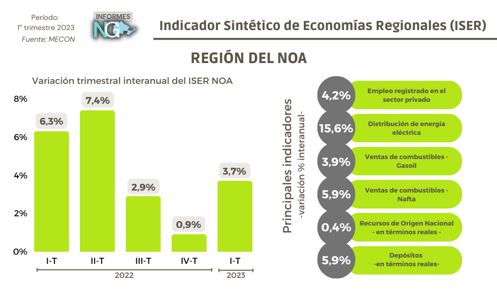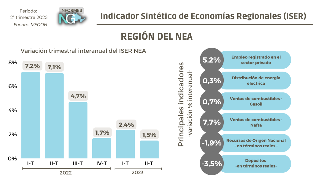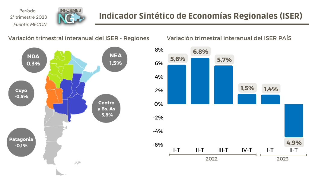 En el segundo trimestre del 2023, el ISER a nivel nacional exhibió una baja del 4,9% interanual, siendo el primer resultado negativo desde el cuarto trimestre del 2020. Visto por regiones, el NOA y el NEA fueron las únicas que lograron incrementos en el período analizado.