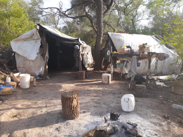 Los inspectores pudieron constatar las precarias condiciones en que se encontraban los trabajadores, vivían en carpas armadas con palos y lonas deterioradas. No tenían instalaciones sanitarias, ni cocina, ni heladera, ni acceso a agua potable.