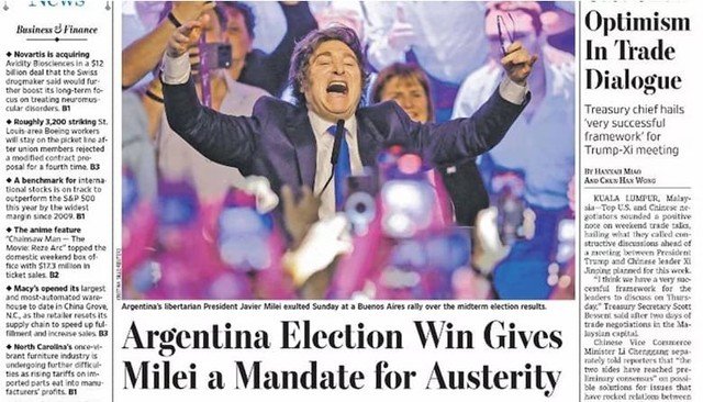 El presidente Javier Milei obtuvo una victoria amplia en las elecciones legislativas del domingo, resultado que fue analizado por distintos medios internacionales como un refuerzo a su programa de reformas económicas. Entre ellos, The Wall Street Journal (WSJ) dedicó su artículo principal a los comicios argentinos y destacó que el Gobierno recibió “un mandato de austeridad” que fortalece su posición frente al sistema político, los organismos internacionales y los inversores.