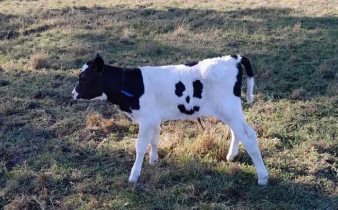 Un ternero nació con un pelaje particular en Australia, pues este al ser todo blanco, le salieron unas manchas negras, lo que, a simple vista, parece una cara sonriendo.
