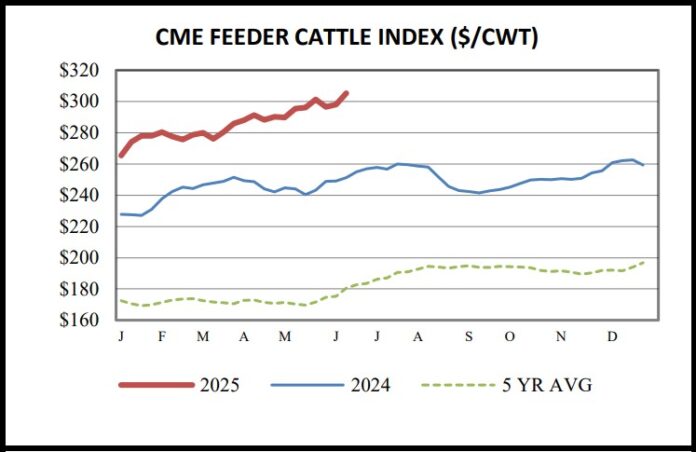 Precio del novillo para engorde en pie en EEUU. Fuente: USDA junio 2025
