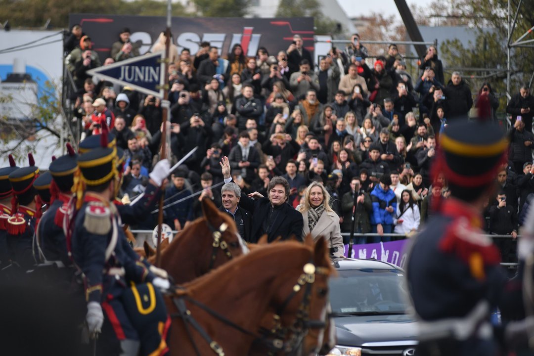 Según supo Noticias Argentinas, los tres llegaron al predio pasadas las 10:30 y, antes de subir al palco oficial, recorrieron la pista central a bordo de una camioneta 4×4, desde donde saludaron a las cuatro tribunas que respondieron con entusiasmo.