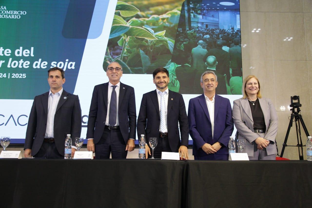 La Bolsa de Comercio de Rosario fue nuevamente sede del tradicional Remate del Primer Lote de Soja, un acto que marca el inicio simbólico de la campaña comercial del agro argentino y convoca a referentes del ámbito productivo, institucional y gubernamental. El evento fue encabezado por el Presidente de la Bolsa de Comercio de Rosario, Miguel Simioni, quien remarcó la importancia de sostener una agenda compartida entre los sectores público y privado: “Estamos convencidos de que este es el camino: articular esfuerzos, integrar miradas y hacer juntos”, afirmó.