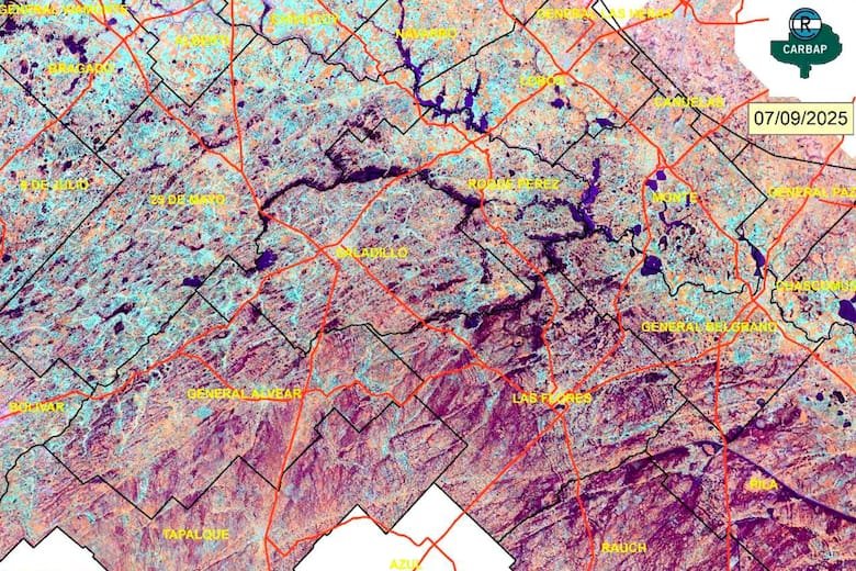 La provincia de Buenos Aires atraviesa una de las peores emergencias hídricas de las últimas décadas. Según un relevamiento de la Confederación de Asociaciones Rurales de Buenos Aires y La Pampa (Carbap), elaborado con imágenes satelitales entre el 2 y el 7 de septiembre, más de dos millones de hectáreas permanecen bajo el agua o con graves problemas de anegamiento. Si a esa cifra se suma la superficie que no puede trabajarse por falta de piso o accesos, el área comprometida supera los tres millones de hectáreas.
