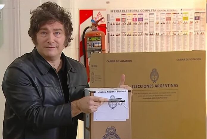 Tras emitir su voto, el líder libertario se retiró saludando a más personas y posando para las fotos con algunas de ellas, mientras que luego se retiró en la camioneta que lo trasladaba junto a su hermana.