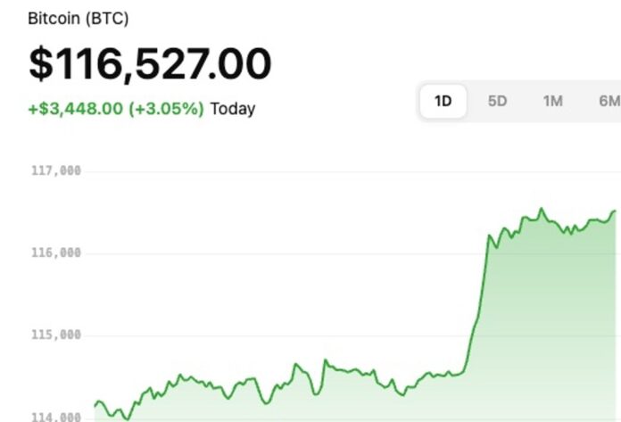 El Bitcoin abrió el día alrededor de US$ 114.048,7, con un máximo intradía de US$ 116.553,3 y un mínimo de US$ 113.970,5. Este comportamiento implica una volatilidad moderada, aunque con sesgo positivo en la sesión.
