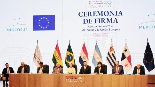 La rúbrica del tratado tuvo lugar en Asunción, Paraguay, donde estuvieron presentes en la ceremonia, el presidente Javier Milei, sus pares Santiago Peña (Paraguay) y Yamandú Orsi (Uruguay), y la presidenta del Comité Europeo, Ursula von der Leyen. El gran ausente fue el presidente de Brasil, Luis “Lula” Da Silva.