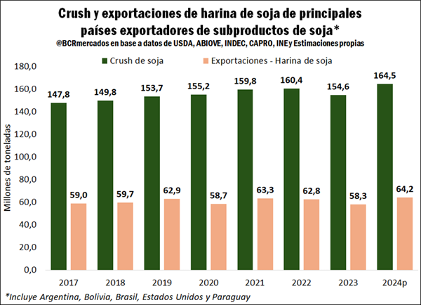 Perspectivas en crush y exportaciones de harina de soja para el año 2024