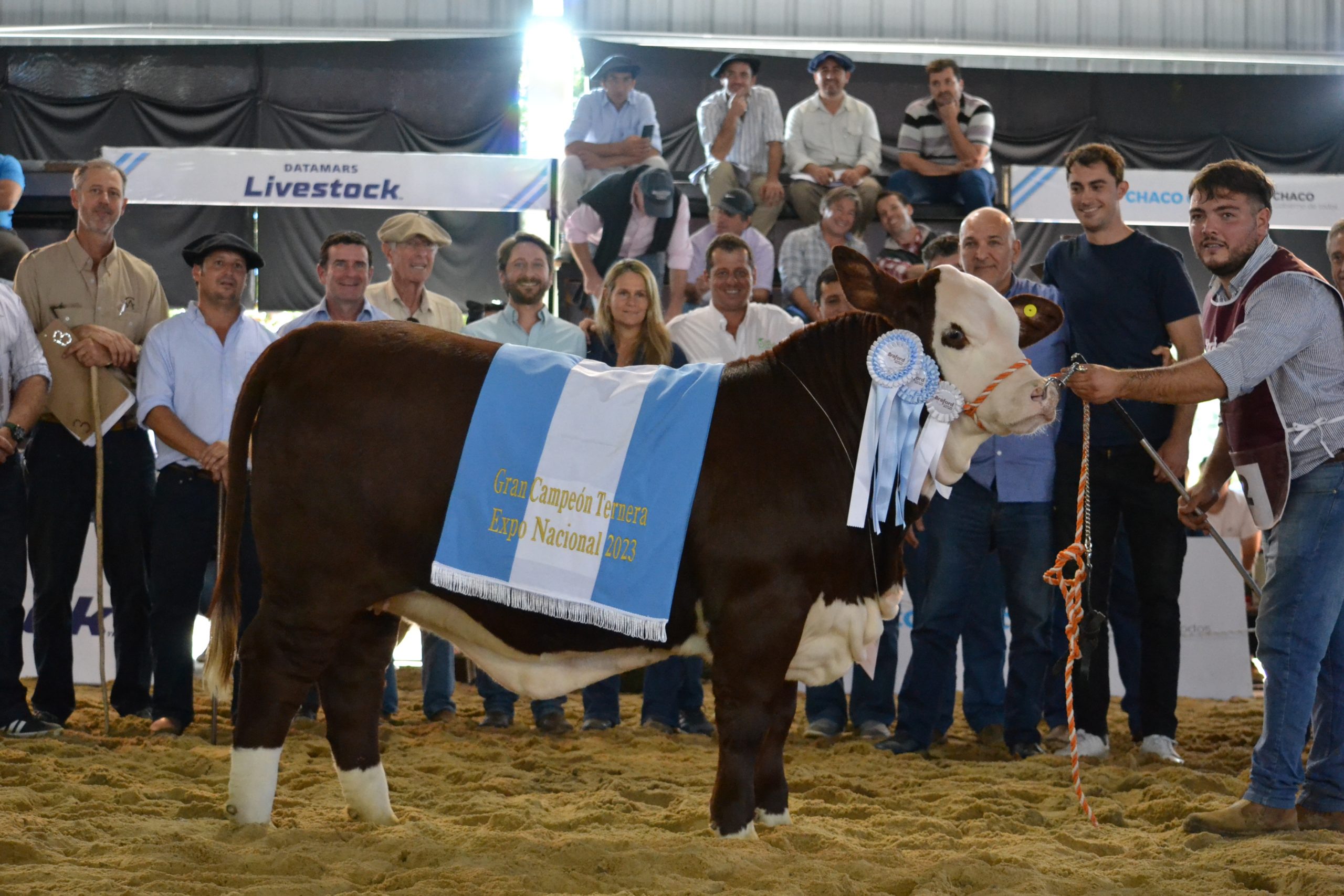 Por la tarde comenzaron a conocerse los grandes campeones de la jornada. En primer término, el jurado eligió a las mejores hembras, donde se consagró como Gran Campeón Ternera el Box 62, presentada en conjunto por las cabañas Doble Zeta y La Pasión, de las provincias de Santiago del Estero y Mendoza, respectivamente. Mucha emoción de Juan Zeman, joven cabañero de cabaña Doble Zeta, quien recibió las felicitaciones por esta gran campeona, hija de “Midas”, que compitió en la categoría Ternera Intermedia Mayor, nacida en mayo de 2022 y ya preñada.