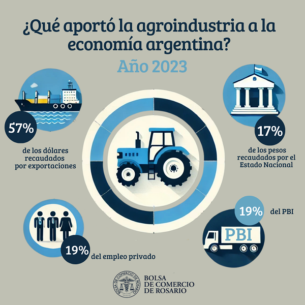 Es de destacar que, aún con sequía extrema, el aporte de las cadenas agroalimentarias a la economía argentina ha sido muy significativo en 2023, contribuyendo con el 17% de la recaudación del gobierno, el 19% del empleo privado, el 57% del valor exportado y el 19% del producto bruto interno del país. En uno de los peores escenarios posibles, el agro siguió siendo un gran dinamizador de la actividad económica nacional.