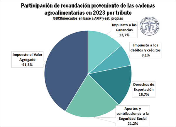 I. Impuestos: el campo y las cadenas agroindustriales y agroalimentarias aportaron el 17% de los pesos recaudados por el Estado Nacional en el 2023.