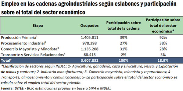 II. Trabajo: el 19% del empleo privado en Argentina está relacionado directa o indirectamente con las cadenas agroindustriales.