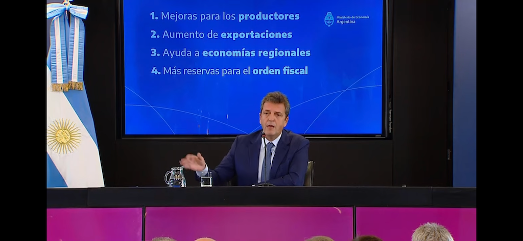 El ministro de Economía, Sergio Massa, afirmó hoy que “el esfuerzo fiscal del nuevo sistema de liquidación de exportaciones ronda los 600.000 millones de pesos” y señaló que “el sector agroindustrial es un sector clave que tiene desde el lugar de la exportación un lugar fundamental que nos sirva para construir valor y sinergia”.