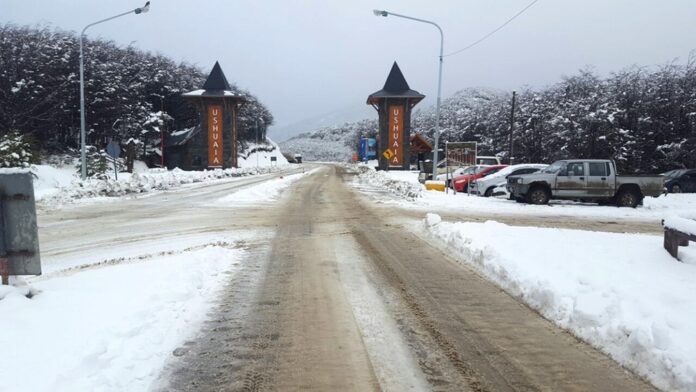 La nieve comenzó a cubrir de blanco a la capital fueguina desde horas de la madrugada, aunque el fenómeno se extendió durante la mañana y produjo acumulación en los techos de las viviendas y en la vegetación urbana.