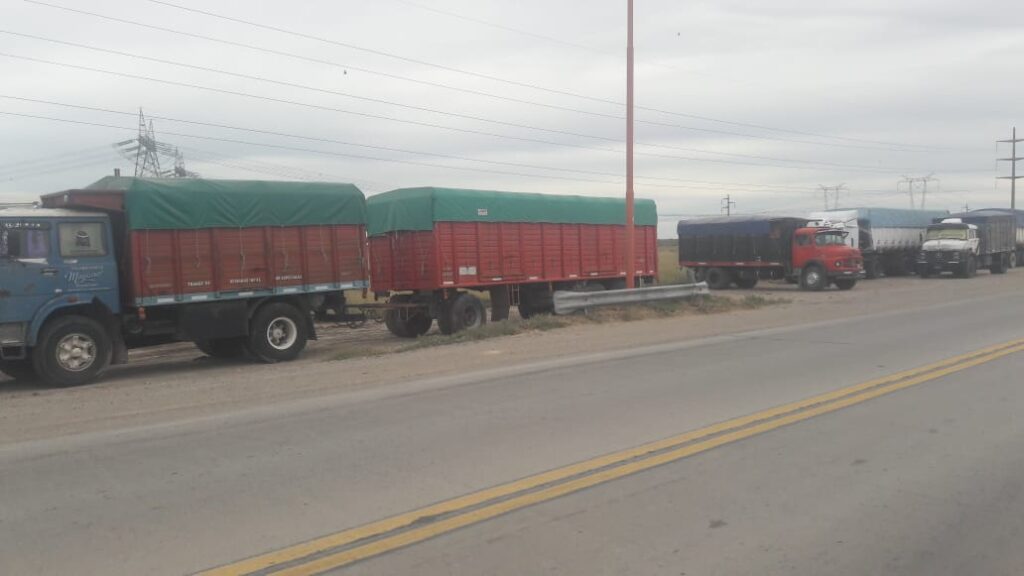 Los retenes y el control de carga es realizado por Transportistas Unidos de Argentina (TUDA), quienes reclaman una actualización tarifaria en el transporte de cargas.