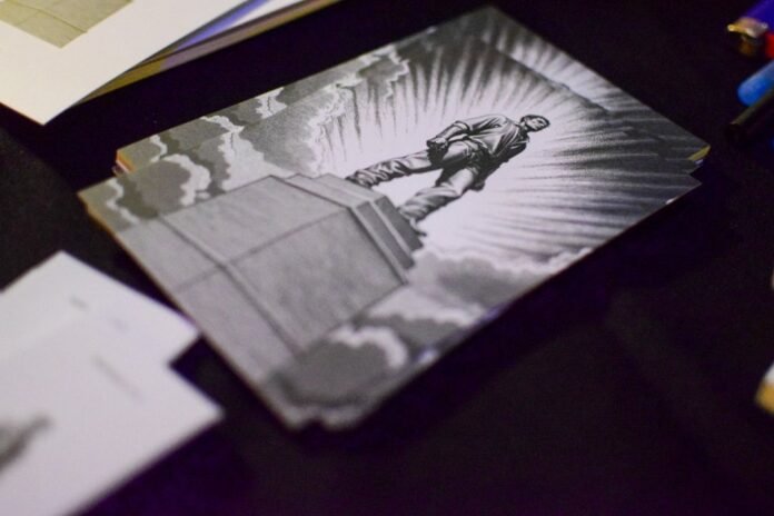 La tapa de la revista exhibe una réplica del monumento inconcluso del descamisado, símbolo de un número que reúne textos, ensayos y reflexiones de una amplia diversidad de voces, entre ellas Tania Rodríguez, Marcos Schiavi, María Moreno, Abel Furlán y Horacio González, además de los propios Recalde y Hagman.