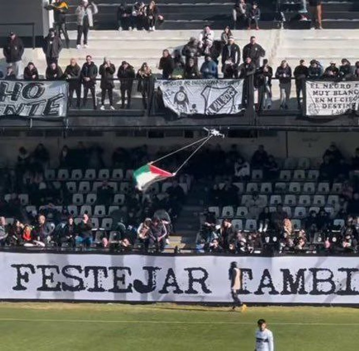 Ese día, los simpatizantes portaron un ataúd con los colores azul y amarillo con una bandera de Israel que lo cubría, mientras que además entonaron cantos antisemitas y un dron sobrevoló el campo de juego sosteniendo una bandera de Palestina.
