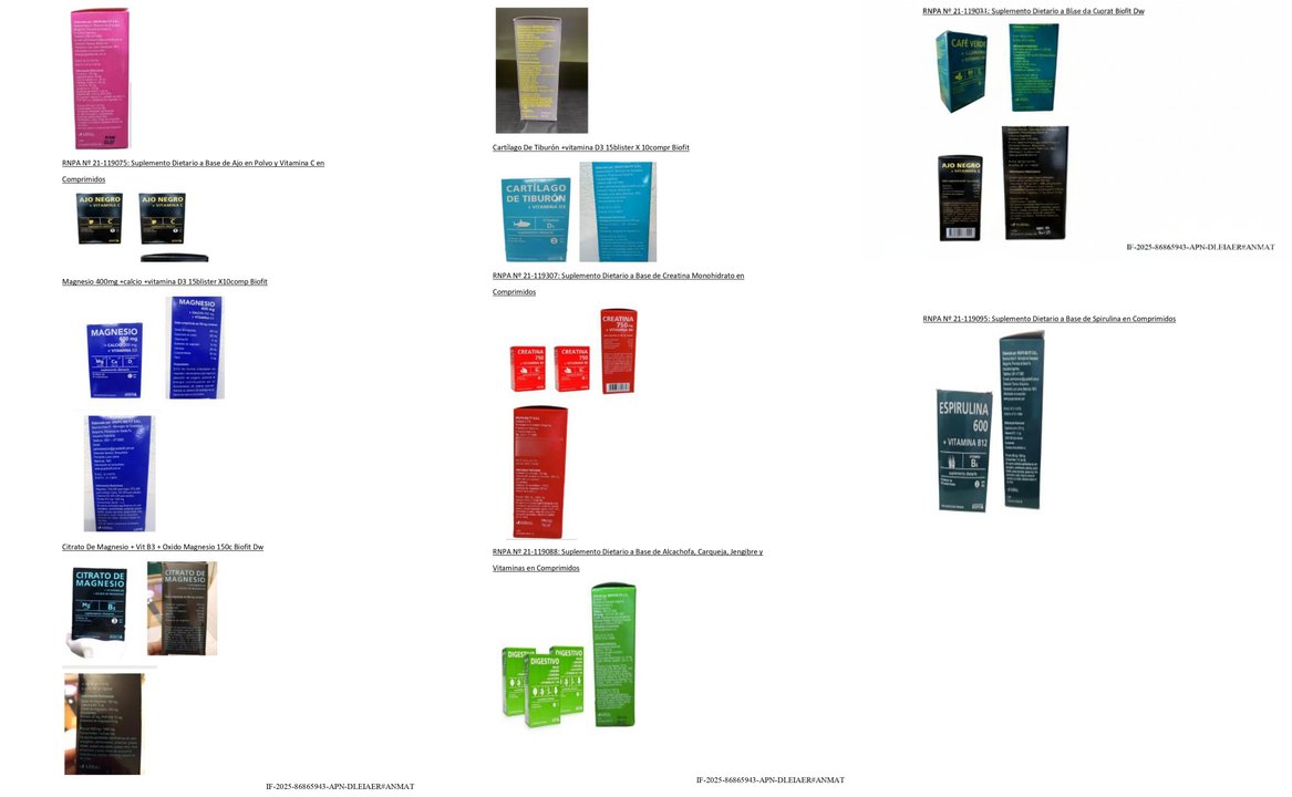 La Administración Nacional de Medicamentos, Alimentos y Tecnología Médica (ANMAT) dispuso la prohibición de elaboración, fraccionamiento y comercialización en todo el territorio nacional y plataformas de venta online de varios suplementos dietarios de la firma Grupo Bio Fit SRL, ubicada en Granadero Baigorria, provincia de Santa Fe, debido a severas irregularidades y falsificación de rótulos.