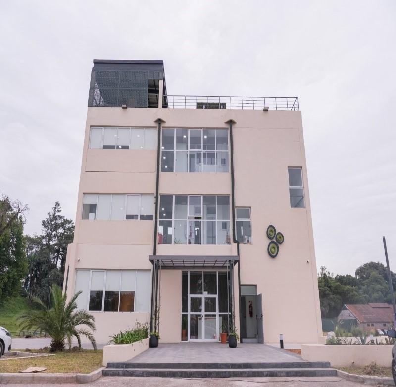 El edificio se distribuye en dos pisos de laboratorio plenamente equipados y uno destinado a coworking, más una terraza de esparcimiento.