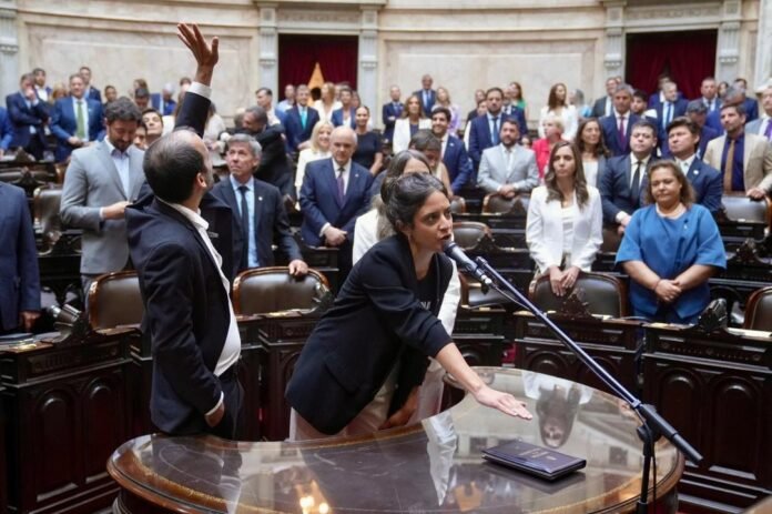 A su turno, la diputada nacional electa por Buenos Aires Fernanda Díaz juró “por Cristina Fernández de Kirchner, que es inocente y tiene que estar libre junto a su pueblo”.