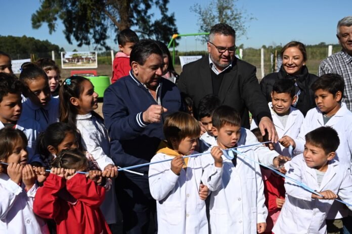 El presidente del RENATRE, José Voytenco, y el intendente municipal de Monte Caseros, Juan Carlos Alvarez, inauguraron el patio de juegos infantiles de la Escuela N° 91 “Cándida Silveira De Silva”, ubicada en el paraje Arroyo Totora. Este acto se realizó en el marco del Operativo Rural Es RENATRE 2023 – 2024 que se realizó el 30 y 31 en la Provincia de Corrientes.