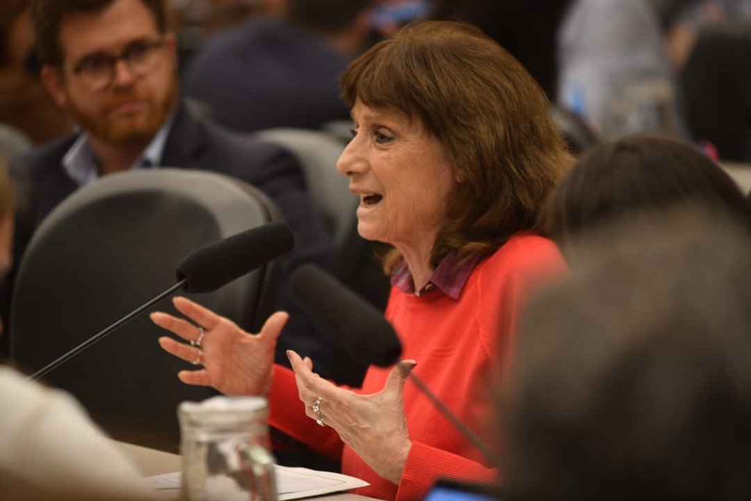 Espert reprendió a las legisladoras de izquierda que seguían gritando y les cortó el micrófono para darle la palabra al diputado de Unión por la Patria (UxP) Carlos Heller, que iba a realizar sus preguntas a Guberman.