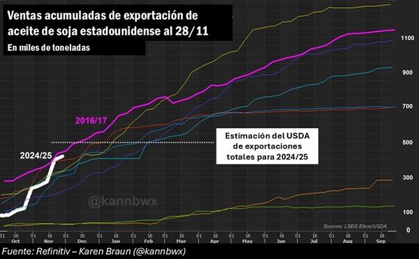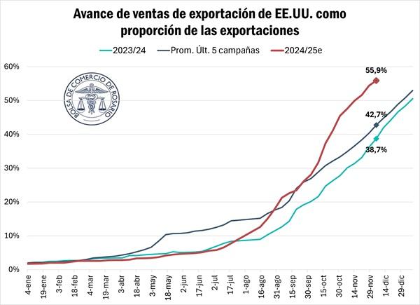 Sin embargo, hay quienes mencionan que el USDA podría haber dejado cierto margen para una nueva suba en las exportaciones, ya que, a finales de noviembre, los compromisos totales cubrían una proporción superior de la nueva estimación con relación a años previos.