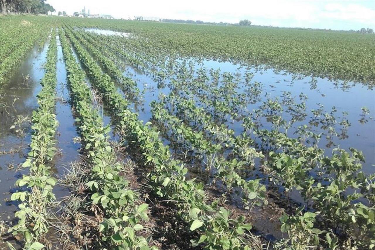 - Cultivos anegados, principalmente soja y maíz, en plena etapa de desarrollo.