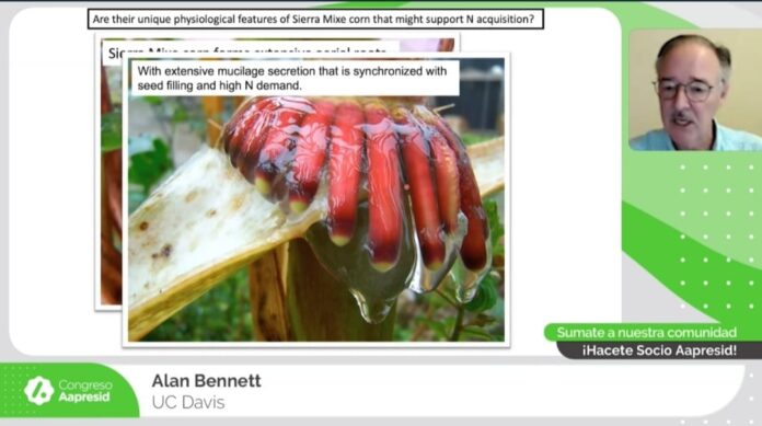 Según dijo el disertante americano, las asociaciones microbianas fijadoras de N en cereales han sido un tema de gran interés durante más de un siglo y en la cual ha trabajado con un equipo interdisciplinario por casi una década. En ese camino, los investigadores pasaron años buscando razas nativas y primitivas de maíz.