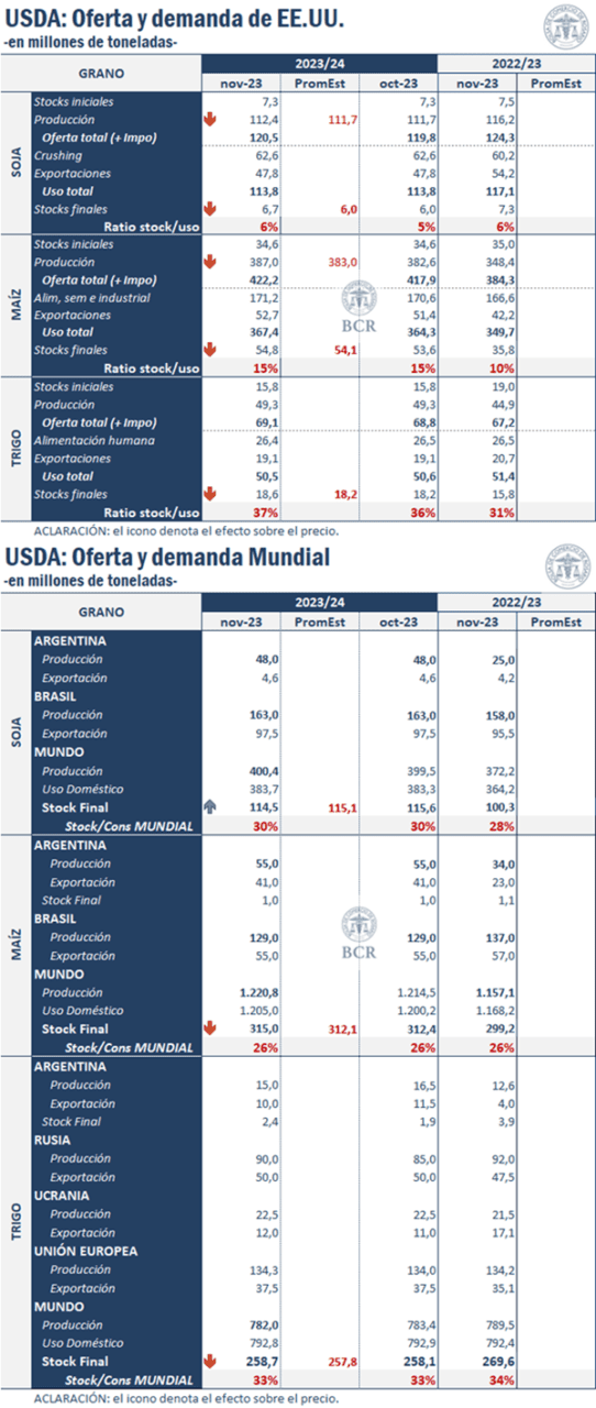 Las estimaciones antes del reporte esperaban un mayor incremento en las proyecciones de oferta para Estados Unidos, pero aún así los guarismos son elevados y mayores a los estimados en el informe anterior. Chicago cede frente a los fundamentals y opera a la baja en todas sus posiciones.