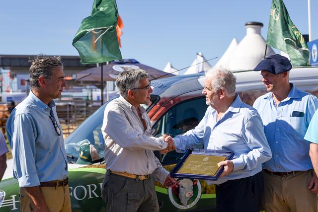 “Es un honor para nosotros que la Secretaría de Bioeconomía, una institución tan prestigiosa, en un país tan ganadero y agrícola, nos reconozca, se acuerde de esa fecha, nos tenga presente y que el Secretario mismo llegue hasta nuestro stand y nos entregue una placa que va a ser muy bien expuesta en las oficinas de Hereford”, aseguró Juan Manuel Aloé, director ejecutivo. Y también agregó: “La raza está pasando por un momento muy competitivo, estamos trabajando mucho en lo que es mejora genética, tenemos un plan de evaluación genética que tiene a su vez planes de investigación. El mes que viene vamos a hacer una prueba de consumo residual para demostrar lo buen convertidor de carne que es la raza Hereford. Seguimos trabajando en temas de moderación, en temas de fertilidad y sanidad. Tenemos aproximadamente 100 actividades a lo largo del año, entre exposiciones y remates. Estamos haciendo actualmente una gira por Córdoba y San Luis, donde estamos mostrando la genética y el manejo de rodeos en esa zona”.